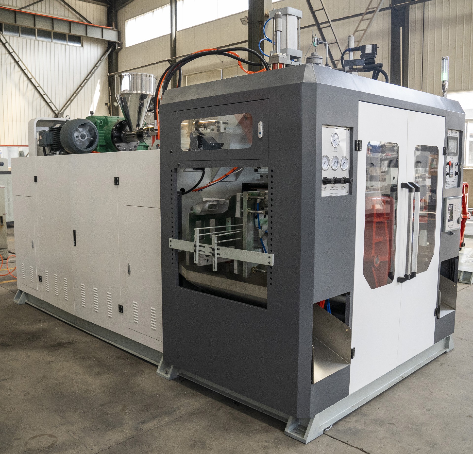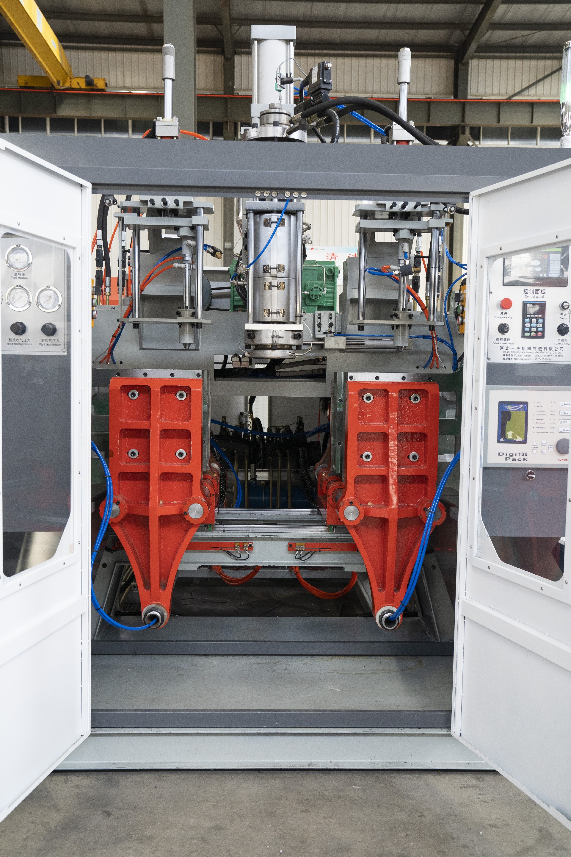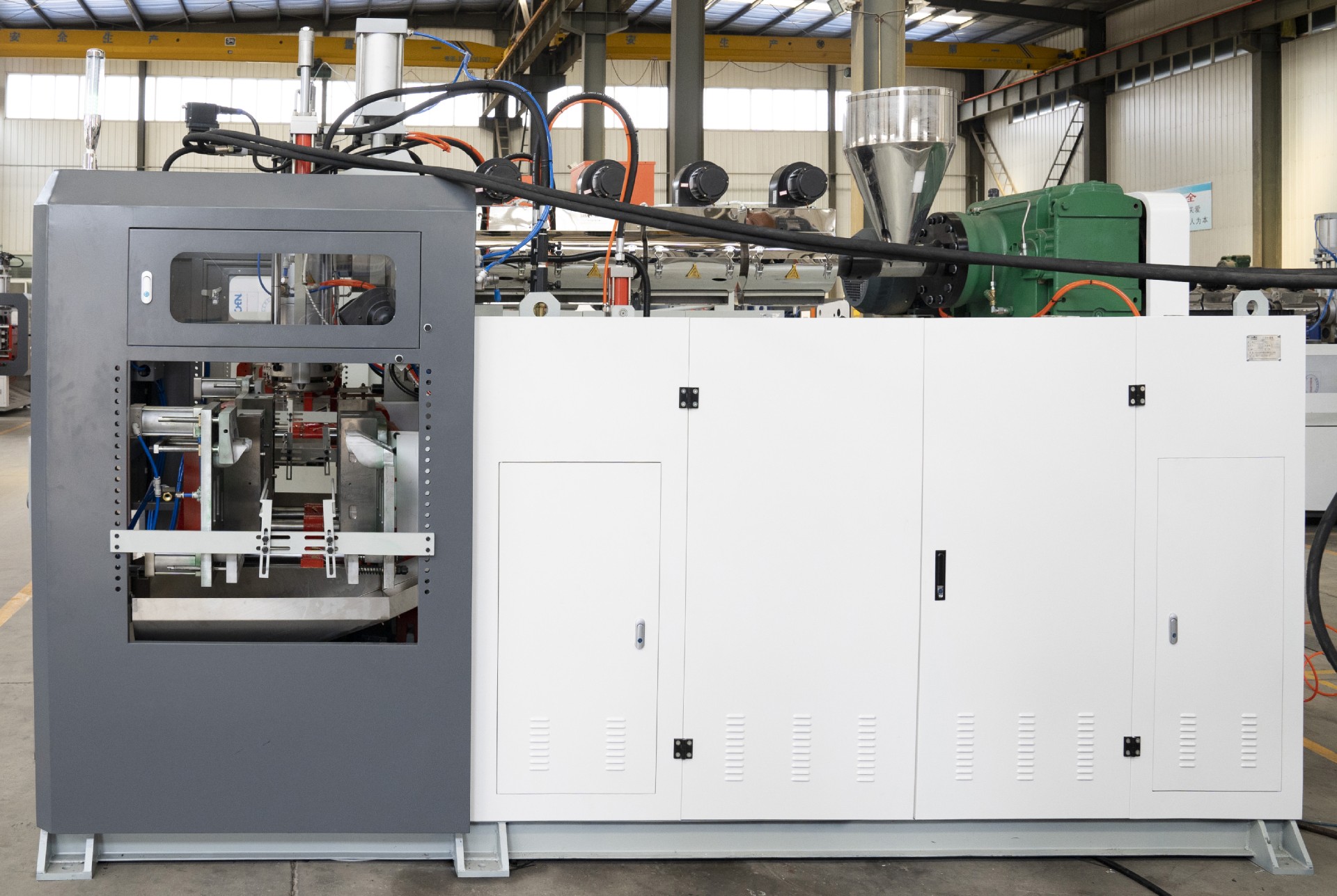 此機為2.5L-12L液壓吹塑機帶包層、液位線(xiàn),可吹制機油壺、酒壺、醬油壺、尿壺等中空產(chǎn)品。