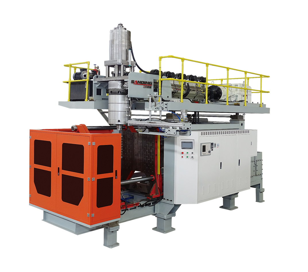本機型是單模頭雙工位液壓合模、氣動(dòng)移模吹塑機。適合吹制5-15升的PE/PP酒壺、機油壺、童車(chē)部件、異形部件等。本機可加裝壁厚控制器及儲料模頭,使設備壓料速度快、壁厚均勻,高