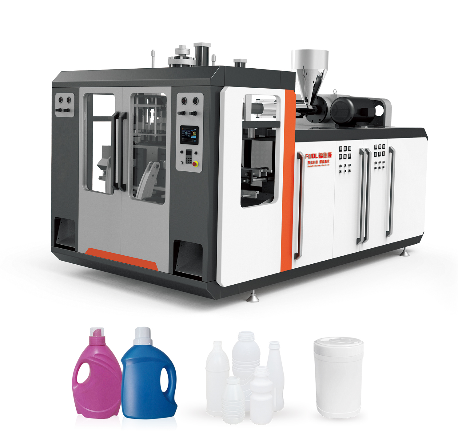 本機是我公司吸收國外技術(shù)、研制開(kāi)發(fā)的。它利用三個(gè)螺筒同時(shí)擠出相同或不同材質(zhì)的塑料原料:聚乙烯、聚丙烯。本機采用變頻調速控制,能夠準確地調節瓶體每層的厚度。本公司提供配方。04.jpg